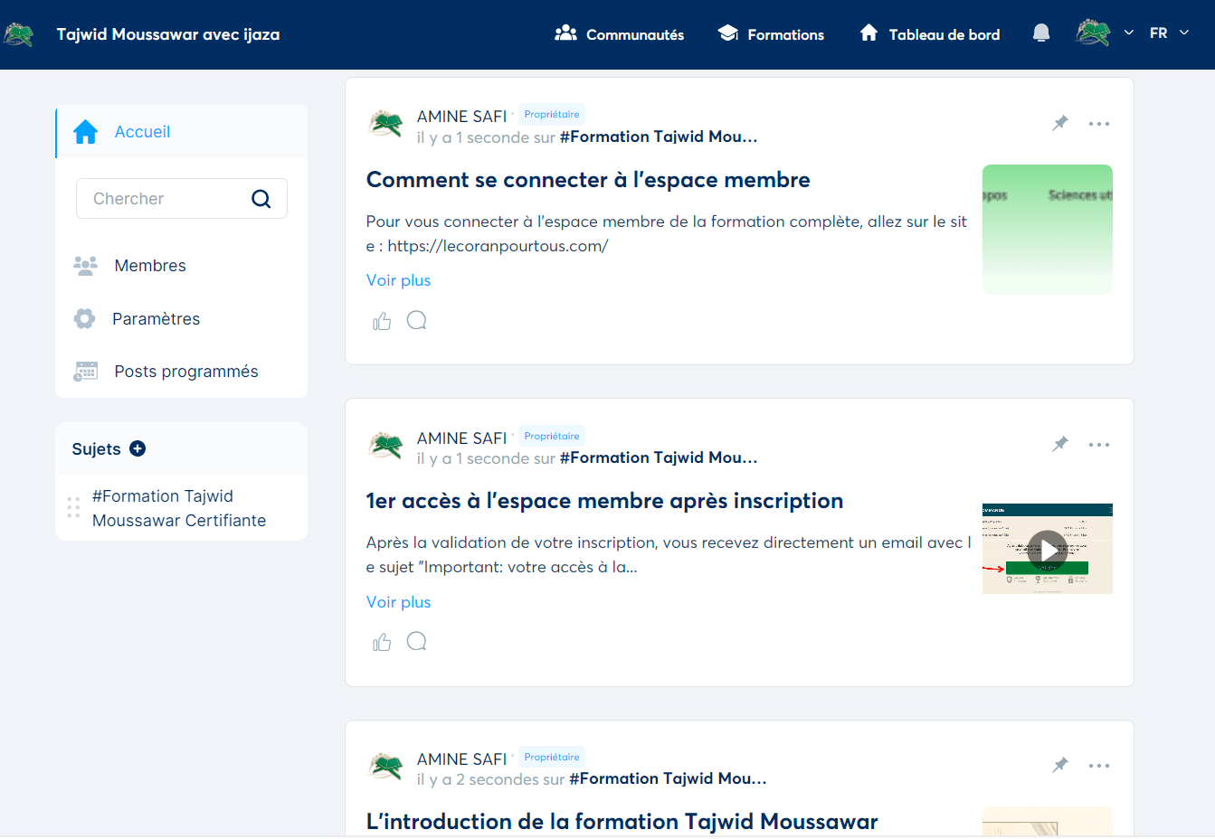 Accès à la Communauté des apprenants de « Le Coran Pour Tous »