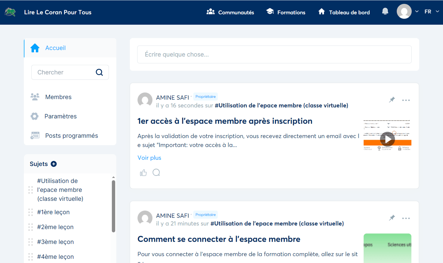 Accès à la Communauté des apprenants de « Le Coran Pour Tous »